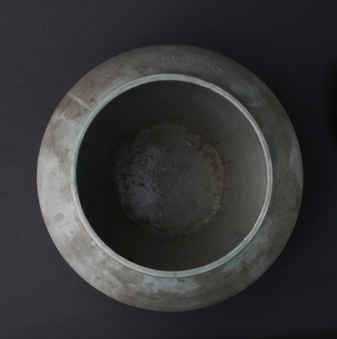 青白釉云龙纹盘出土四件,四件盘子是完全一样的,盘内壁饰双龙纹,龙体瘦长,间饰云纹。