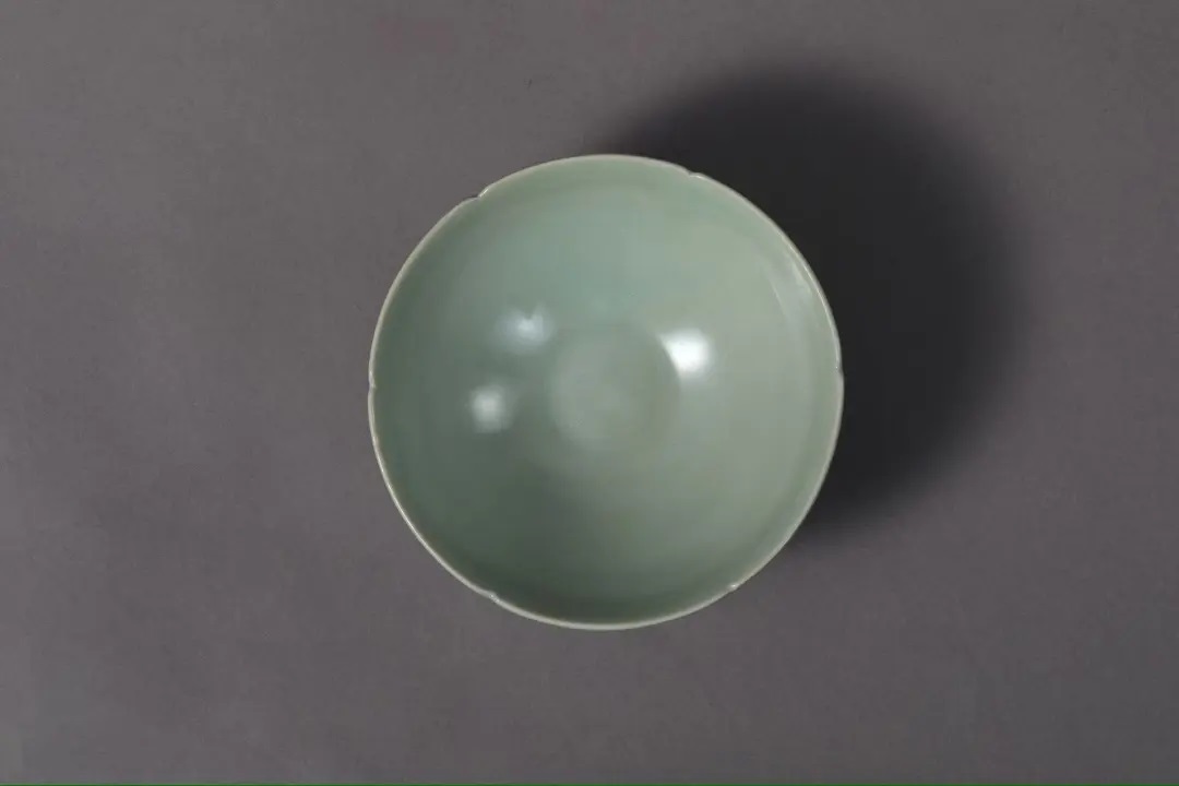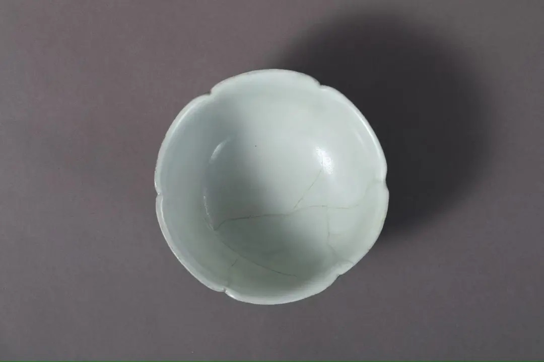南宋官窑青釉花口碗器施青釉,釉层均匀,呈天青色,胎质细腻。釉面乳浊。