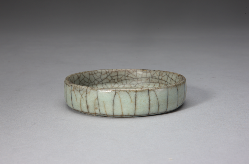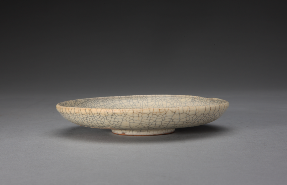 宋代哥釉瓷器均为失透的乳浊釉,釉色浑厚细腻,光泽莹润,如同凝脂。宋代哥釉瓷器釉面间迸裂有大小不一,或密匝或疏落的冰裂状网纹,深浅不一,如网如织,深纹片呈黑色,浅纹片呈黄色,俗称“金丝铁线”纹。“金丝铁线”纹形成的原因是哥釉瓷器的坯体与釉的膨胀系数不同,在窑内冷却的过程中釉因收缩率大而开裂,开裂时间可持续多年。