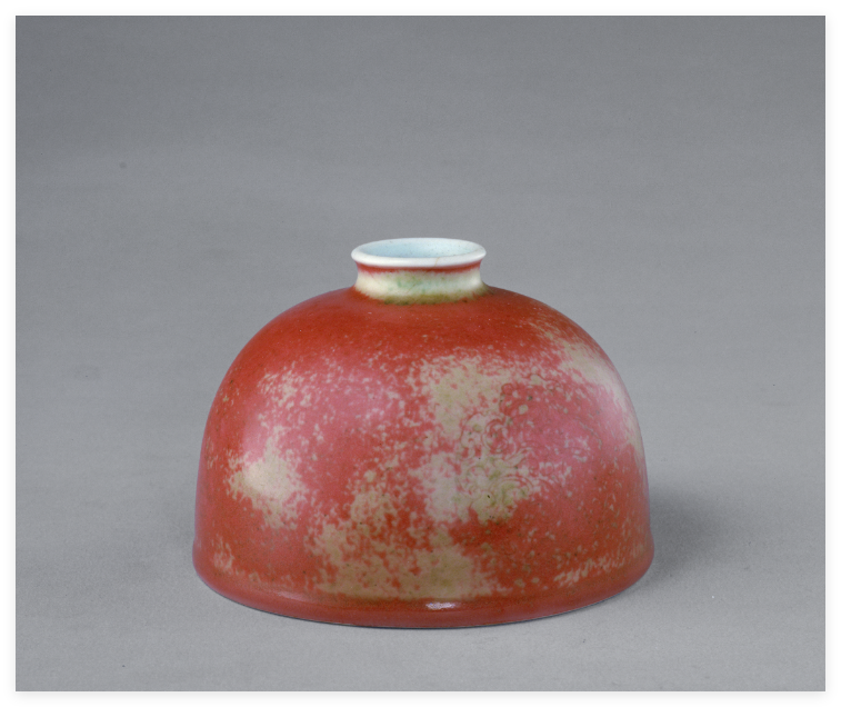 为清代康熙官窑所创烧,太白尊这类器型的烧成难度大,制作时间短,所以传世数量极少。瓷器太白尊是专供皇室使用的特殊类型的水盂。