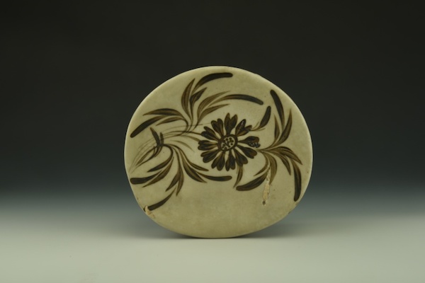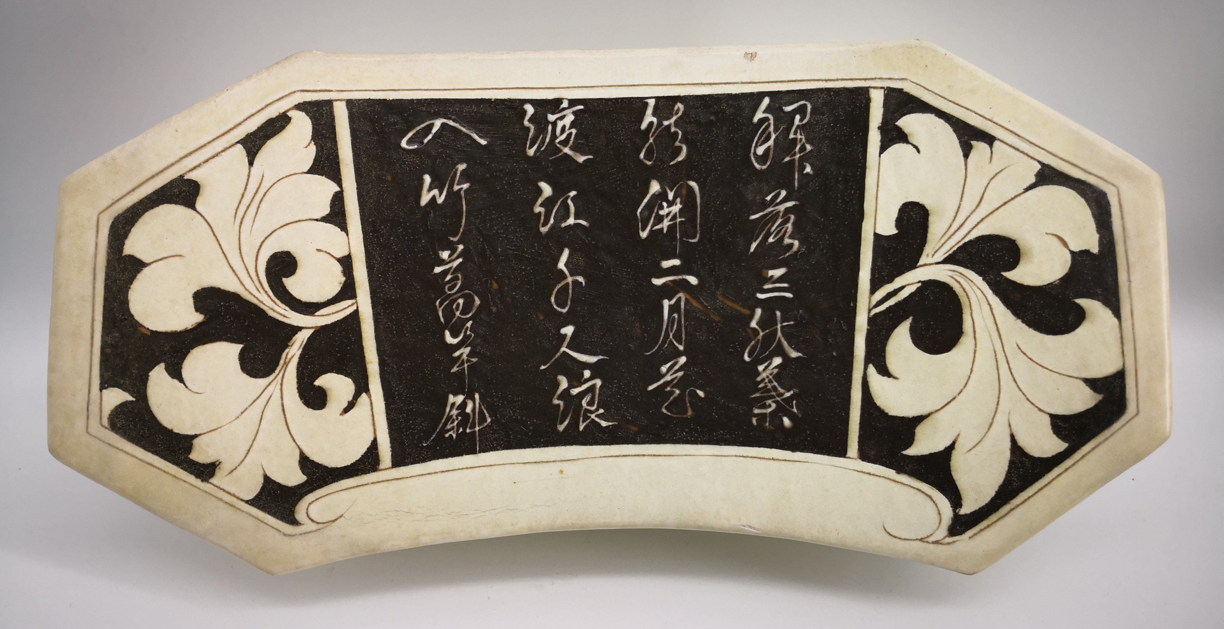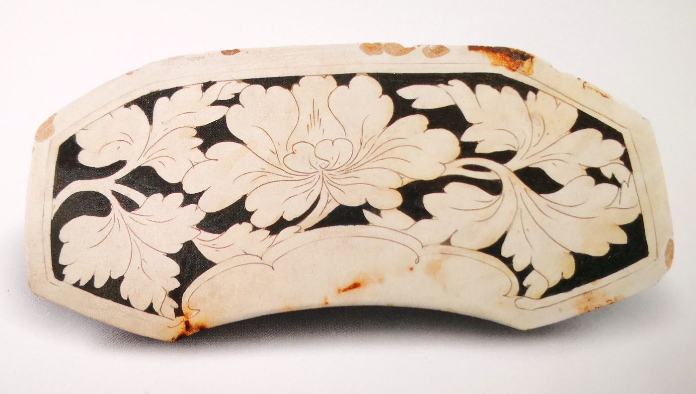 3.河津窑金代瓷枕剔花填黑技法非常流行,白如凝脂,黑似刷漆,将黑与白的碰撞演绎到了极致。