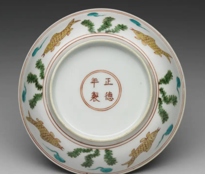 5.正德五彩瓷器一般都是官窑烧造的,底款多为“正德年制”楷书四字双行款。