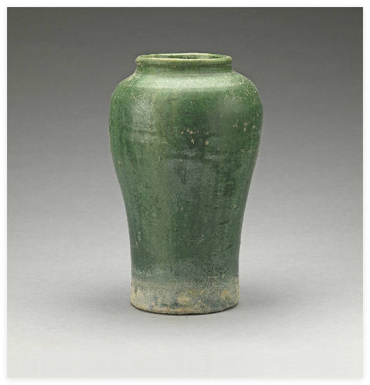 王玺家族墓出土单色釉瓷器器型多样,有三足爵杯、罐子、梅瓶、坛、盘子等器型,虽然都是陪葬品,但是不乏精美瓷器,绿釉晶莹漂亮。