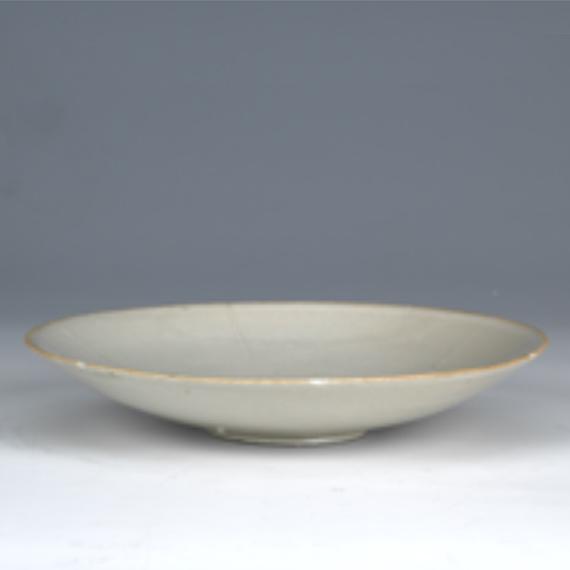 陈庆墓出土的白釉折沿盘折沿,圆唇,六瓣花口,白色胎,质坚硬。白釉,圈足凹面不挂釉。圈足内底有支钉痕十六个。