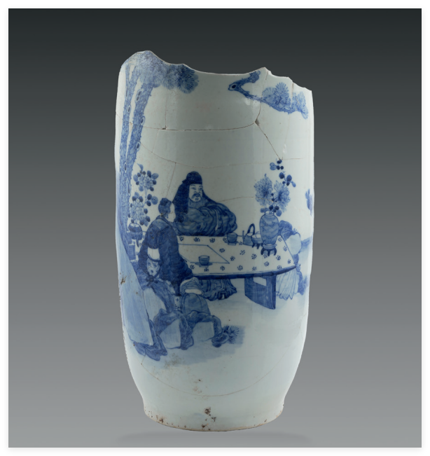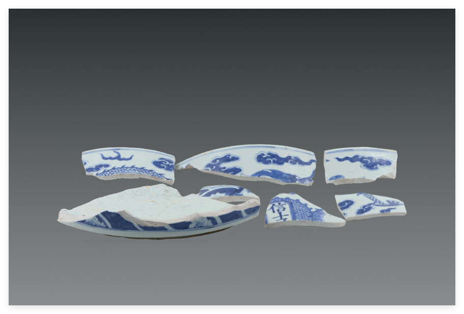 五王庙遗址位于江西景德镇御窑厂北,五王是明晚期官民共祭的瓷业行业神,所以遗址中出土大量和宗教相关的明清时期青花瓷器残片,有香炉、烛台、瓷拍、花觚、尊等与宗教相关的瓷器。