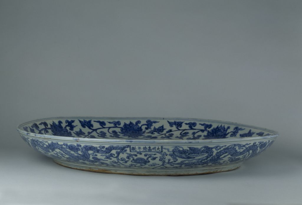 另一种是写在器物外底的青花楷体“大明嘉靖年制”六字双行款。