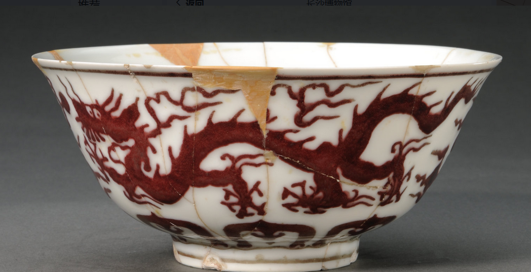 线绘釉里红瓷器以铜红料绘描绘图案纹,这种工艺有视觉层次感。