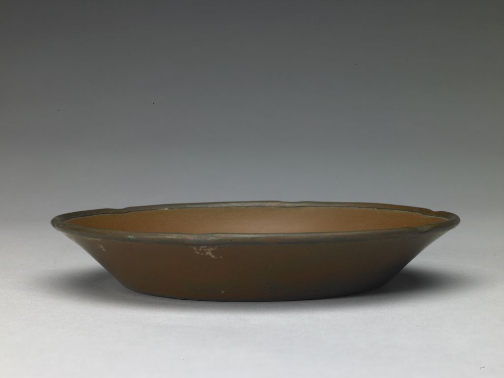 宋代定窑紫金釉釉质细腻有光泽,釉色滋润柔和,胎釉结合紧密。
