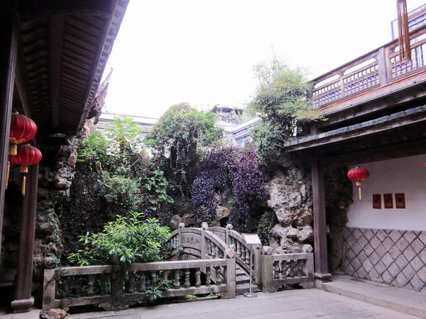 西花厅自成院落,保存较为完好,为双层小楼,穿斗式木构架,双坡顶,四面围墙,楼内驼峰、雀替、斗拱均精雕细刻。楼上为主人的藏书阁,楼宽六米、进深九米,楼阁内的十二扇隔扇门、六扇门窗的镶嵌有精美的图案,采用珍贵的楠木精雕而成。穿斗架上绘龙描凤,楼上花格栏杆,通透式宽敞走廊,檐口吊柱、顶饰、雀替等精雕细刻、剔透玲珑。走廊两侧对称出挑露台,造型独特。楼下左、右两侧通道均用糯米和三合土塑制成假山、雪洞,曲径通幽。雪洞宽约二米,深约八米,高可容人进出。