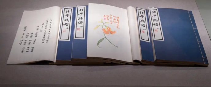 《北平笺谱》收录了北京笺纸的传统雕刻技艺,1933年12月由上海良友图书印刷公司出版。该版本为宣纸线装,每套六卷。北平荣宝斋等处木板水印初印本,由鲁迅、郑振铎编。