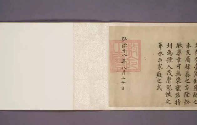 《明孝宗皇帝弘治敕命》是中国明朝时代史料中的委任书的一种.高级官员对东西誥命,下级官僚対东西敕命被称,两者的总称。