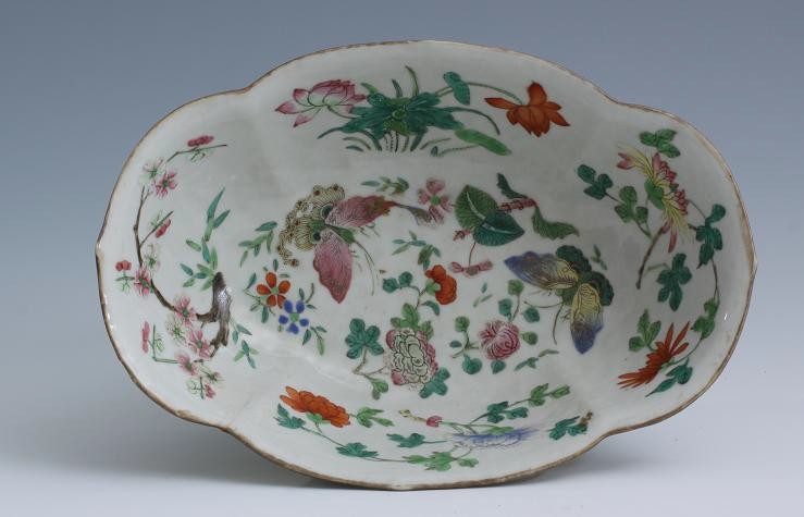 清嘉庆款景德镇窑粉彩花卉纹瓷海棠碗