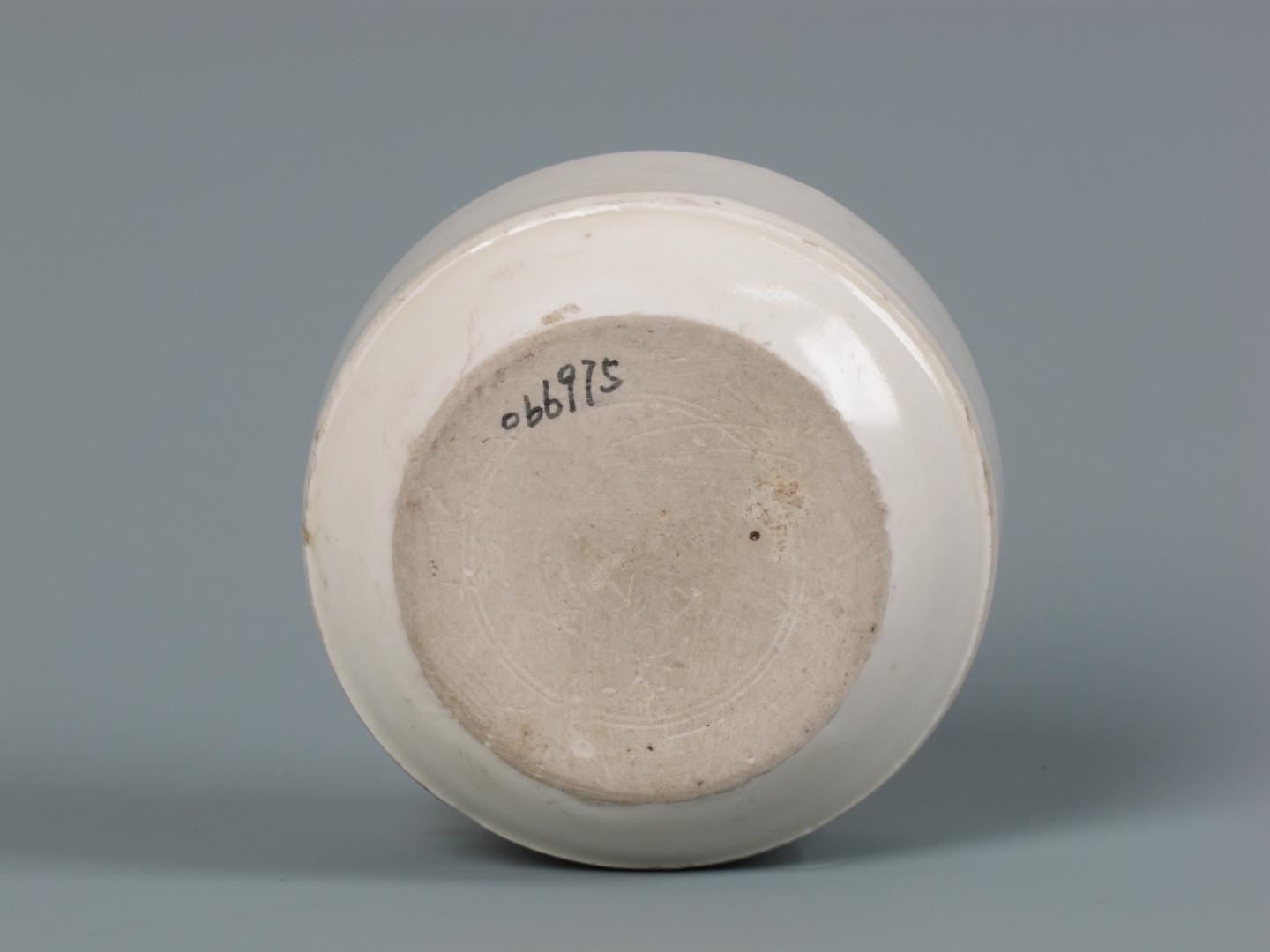 浙江博物馆北宋定窑龙纹"尚药局"铭白瓷盒子母口,盖面隆起,盖顶平,直壁。盖顶阴刻团龙一条,双目突起,须发张扬,身姿矫健。盒直壁,下腹折身。盖与盒身立壁均刻有"尚药局"三字。除子母口沿及外底无釉外,通体施白釉。器形规整,胎质细腻白净。