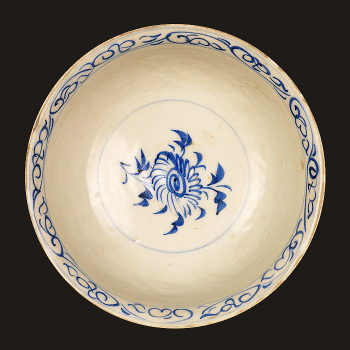 青花文饰中有深色结晶斑点,当是用进口苏泥勃青钴料烧制的元青花瓷器。