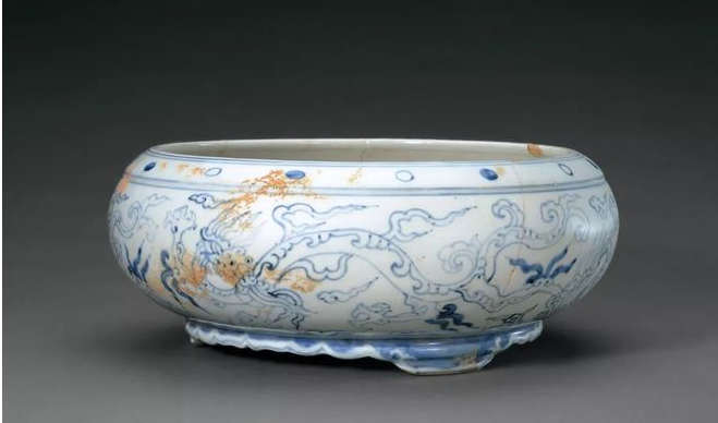 景德镇御窑遗址出土明正德 青花螭龙纹三足盆半成品