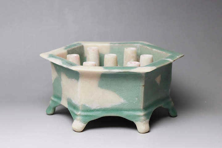 瓷器器型以碗、盘、长颈瓶、壶、罐、缸等日用器为主,也见有少量笔山、水盂等文房用具及花插、器座,以及瓷俑之类的摆件。