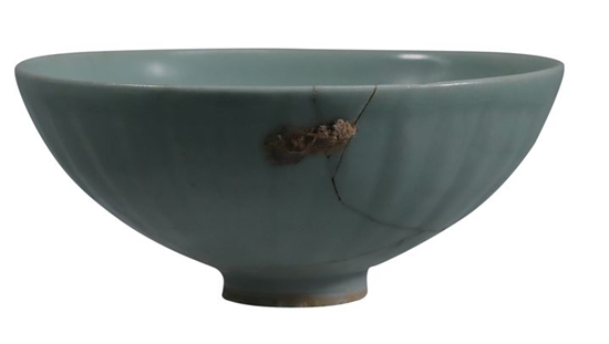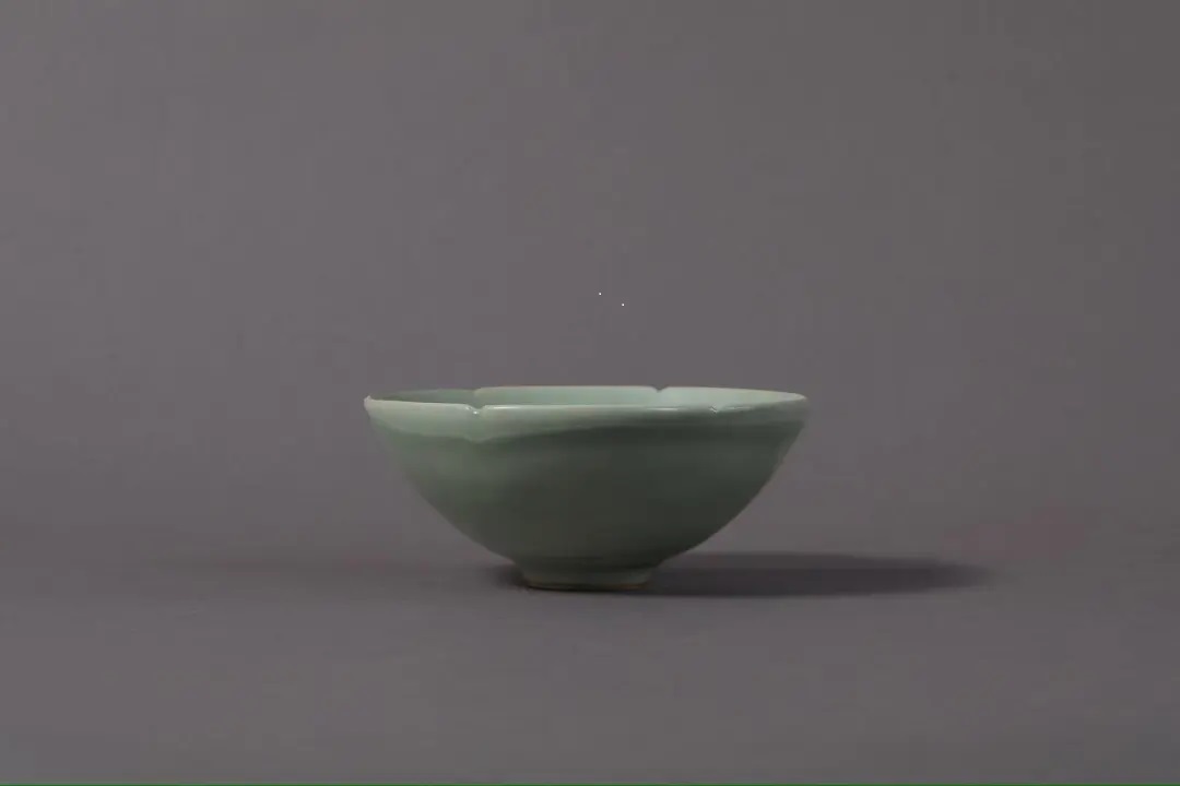 南宋官窑青釉花口碗器施青釉,釉层均匀,呈天青色,胎质细腻。釉面乳浊。