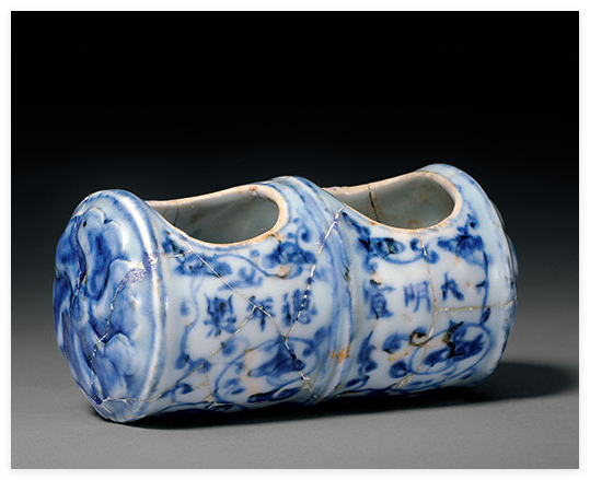 3.景德镇珠山明代御窑遗址出土的宣德青花鸟食罐使用的都是进口的苏麻离青青料,有苏麻离青特有的铁锈斑。