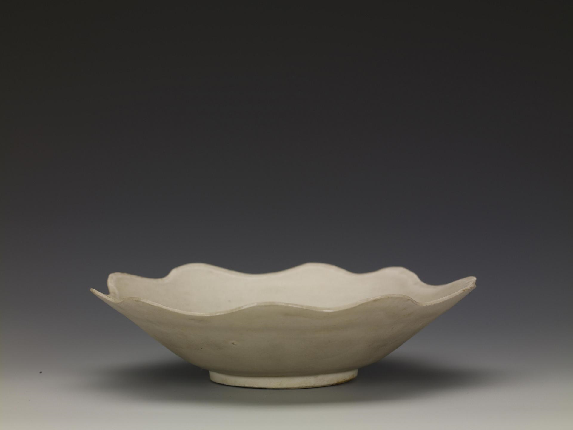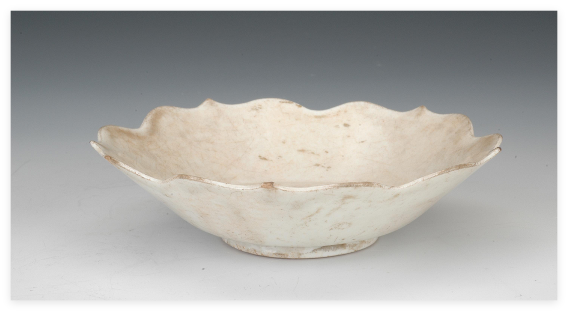 花口盘瓷器起源是受到西亚金银器造型的影响创烧的,从唐代中晚期开始流行的,五代时期瓷器花口盘最为盛行,到了宋代定窑也大量烧造瓷器花口盘,从唐代的秘色瓷、五代的邢窑白瓷、宋代的定窑白瓷都有烧造瓷器花口盘,可见瓷器花口盘影响深远。