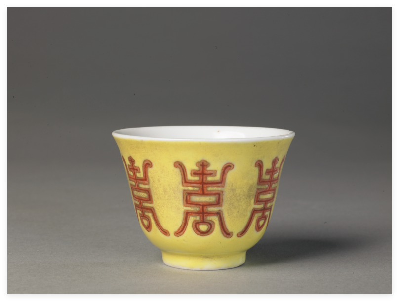 黄釉瓷器小盅功能主要是生活用瓷,主要是皇宫里用来喝茶和饮酒的;