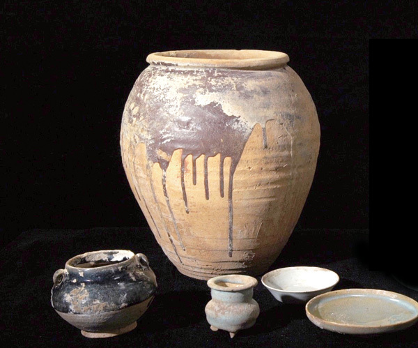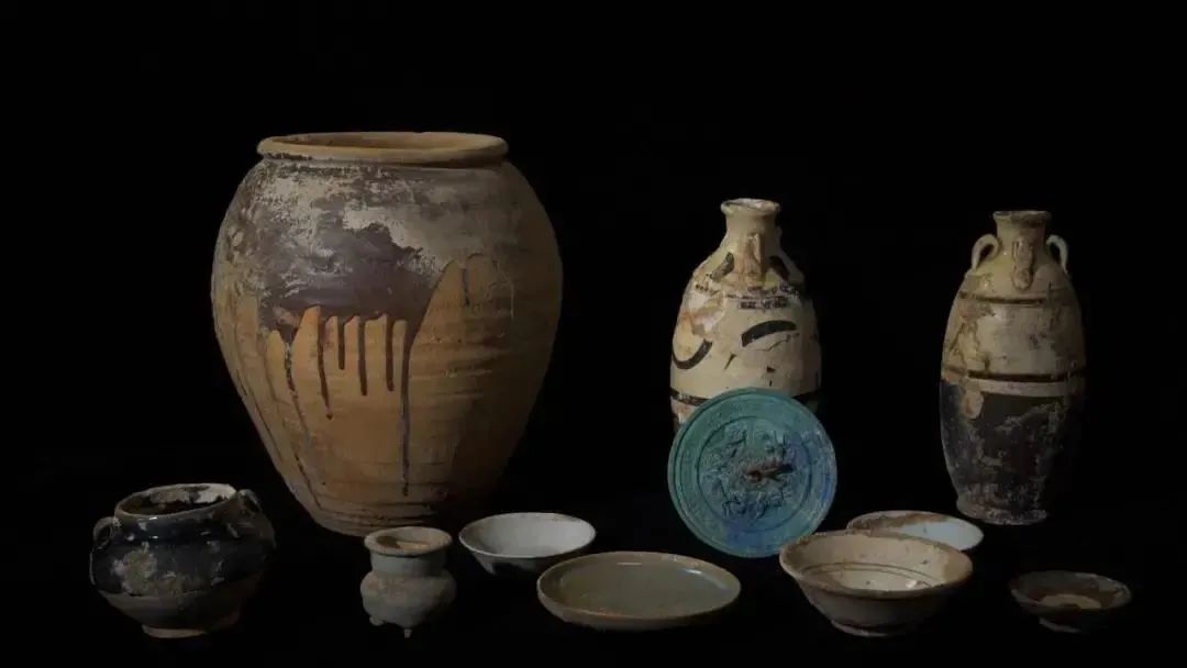 墓地出土器物包括瓷碗、瓷罐、瓷瓶、瓷香炉、铜镜、铜钱、镇墓石等100余件(套)。