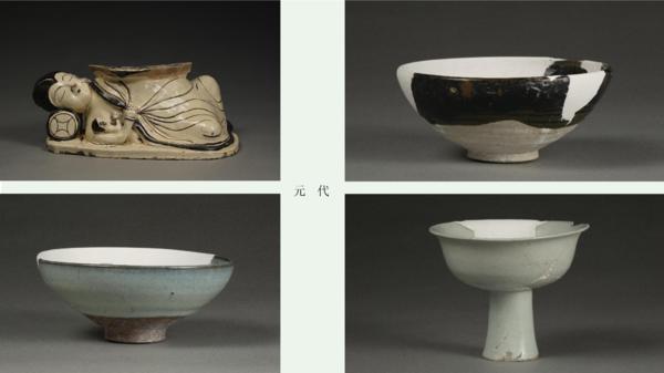 州桥遗址出土的元代时期的瓷器有白地黑花花卉纹高足杯、瓷枕等,还出土了元代青白釉高足杯、元代钧釉碗等。