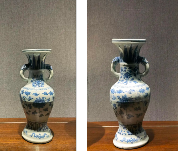 新北小区四期蜀王府太监墓群明代正德时期青花缠枝花卉纹象耳供瓶一对