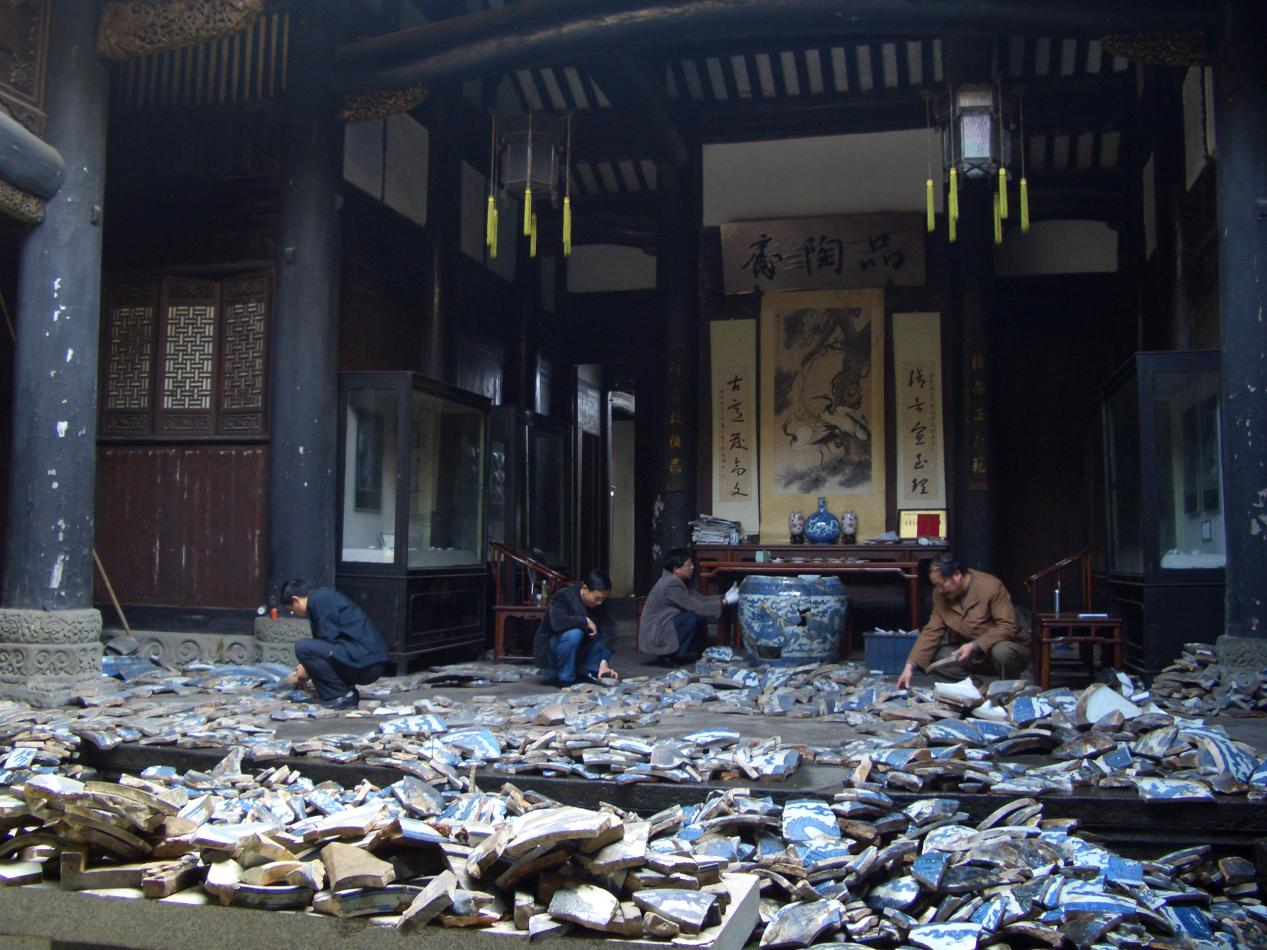 1987—1988年,御窑厂遗址内珠山之顶修建龙珠阁,在珠山东北侧,考古发掘清理出三处明成化官窑堆积层:
