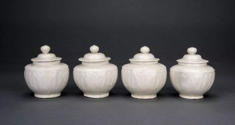 定窑莲瓣纹盖罐形制、尺寸基本一致,4件均出土于主室木椁内。定窑莲瓣纹盖罐白胎,胎质细腻,胎壁较薄,釉色莹润光亮。