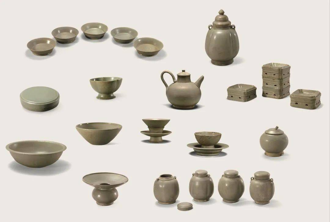 9个套盘为正方形的小盘,釉色青中泛灰,一个个整整齐齐地叠起来,生前可能用来放零食的果盘。通过钱元瓘王后马氏墓出土的秘色瓷,能够充分体现古人视死如生的观念。