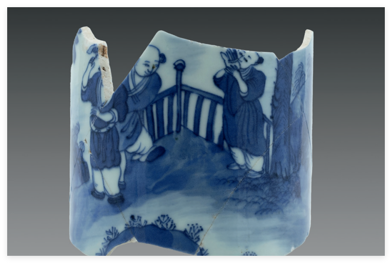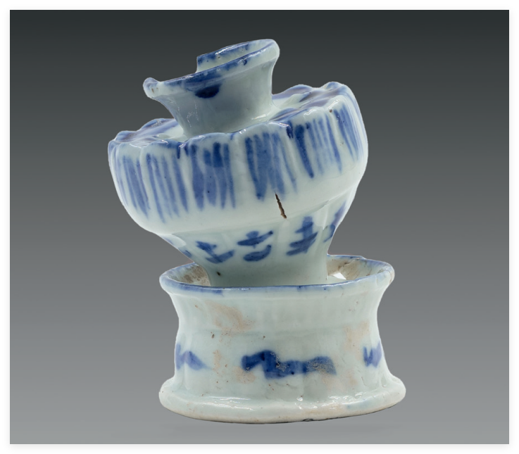 五王庙遗址位于江西景德镇御窑厂北,五王是明晚期官民共祭的瓷业行业神,所以遗址中出土大量和宗教相关的明清时期青花瓷器残片,有香炉、烛台、瓷拍、花觚、尊等与宗教相关的瓷器。