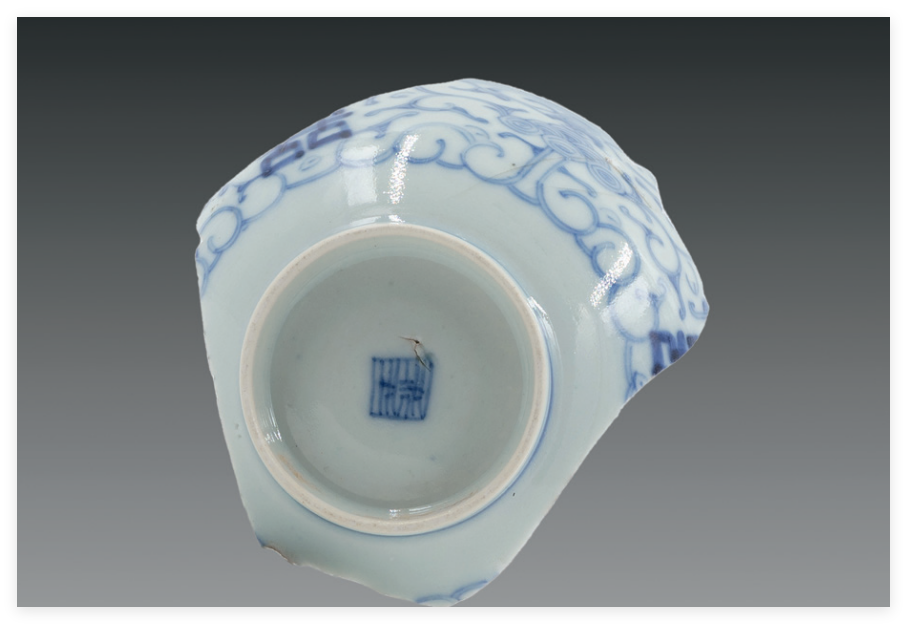 3.五王庙遗址出土的青花瓷器多数是清代的青花瓷器,跨度比较大,青花发色也不同,有康熙时期的青花发色亮蓝的青花瓷器,也有雍正时期的淡描的民窑青花瓷器,青花发色浓淡层次分明,线条流畅。也有乾隆时期釉色莹润肥厚,玻璃质感较强的青花瓷器。