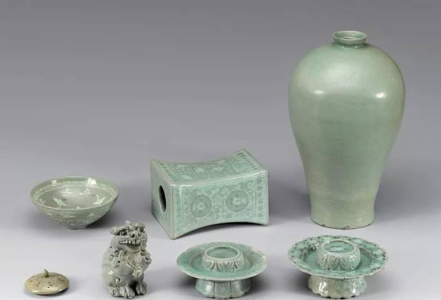 新安沉船出水龙泉瓷器器形种类增多,新出现高足杯、菱口盘、凤尾尊、荷叶盖罐、胆式瓶、玉壶春瓶、双环耳瓶炉、瓶、罐、注子、塑像、盏、盏托等器型。