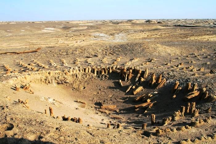 太阳墓葬不惜以大量树木为代价而建造,步入其中可以看到一组组用七层胡杨木桩围成的同心圆圈,木径粗达三十余厘米。整座墓地远远望去,就如一轮古老沧桑的太阳,镶嵌在戈壁荒原上。由此,人们称其为“太阳墓葬”。