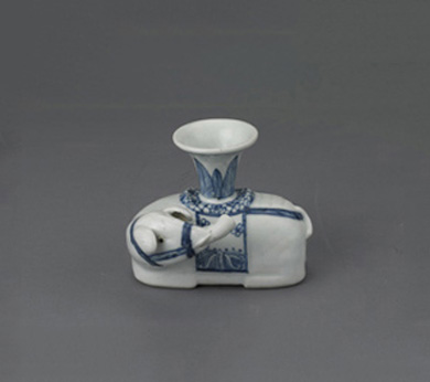 清代早期青花瓷器太平有象尊整体呈卧伏象形,背部有喇叭形瓶口,头部望向尾部。