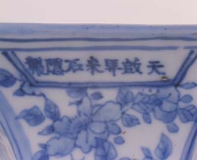 米万钟不仅仅是官员,而且是明代晚期四大家,琴棋书画样样精通,米万钟降个性情操和审美趣味直接投射在瓷器上,这一举动开启了明末清初瓷器订造的先河,因为米万钟是迄今为止可确认的最早在瓷器上署写姓名斋号的文人。“天启年勺园制”款、“天启年米石隐制”都是米万钟定制私人款式瓷器。