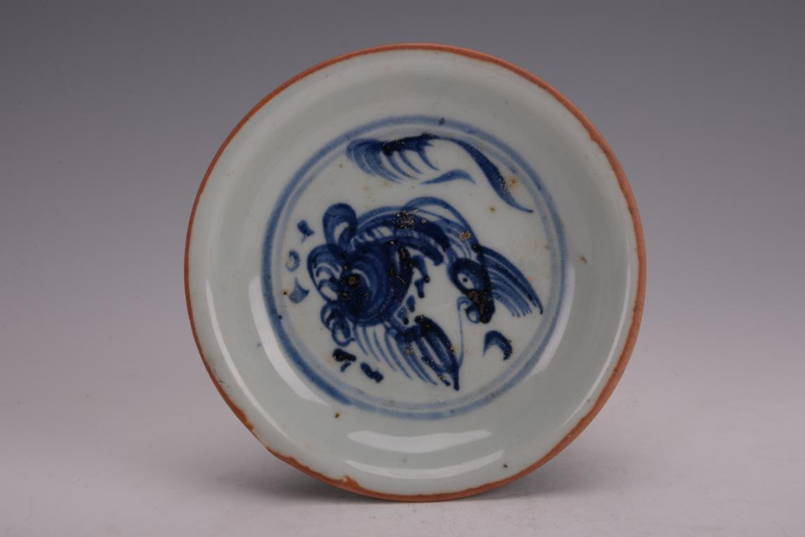 3.上畈头墓出土明代民窑青花瓷器底部有火石红,有缩釉现象。
