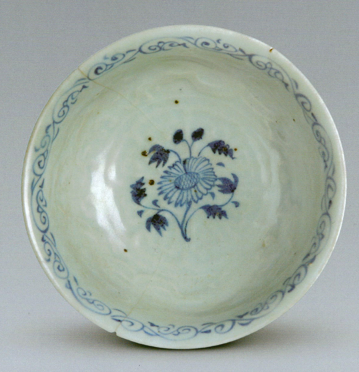 河北泊头市张庄出土两件龙纹青花高足杯胎质致密,釉色白中闪灰。