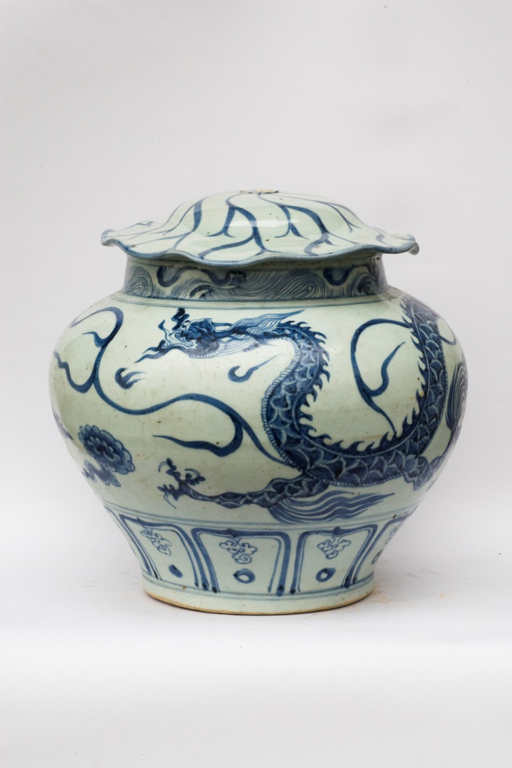 2.元青花龙纹荷叶状盖罐
