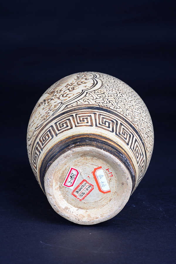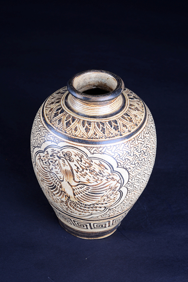 > 北宋吉州窑褐彩开光飞凤纹罐