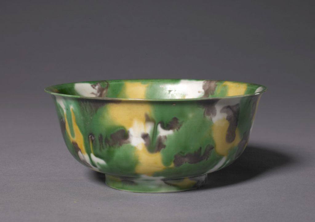 清康熙素三彩虎皮斑釉瓷碗