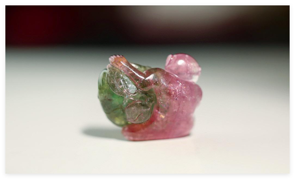 碧玺随着晶体的生长,它会选择适合晶格的元素。当溶液中的元素消失,其他元素被取代,晶体的颜色也会随之发生变化,同一个碧玺矿内能够产生不同颜色的碧玺。富含铁的碧玺是深蓝色或黑色,而高浓度的锰则让碧玺晶体呈现红色、粉红色、棕色或黄色,祖母绿般的绿色碧玺是由铬引起的,而锂能够产生彩虹色。西瓜碧玺是碧玺的一种,西瓜碧玺以红色和绿色为主,很像是我们吃的水果西瓜而得名,但是西瓜碧玺颜色的分布和深浅则取决于其生长环境的化学成分和结晶,由于含的金属元素不同,不光是粉红色和绿色,还可能呈现粉色、黄色、紫色等多种色彩,那么西瓜碧玺的颜色是怎么形成的呢?