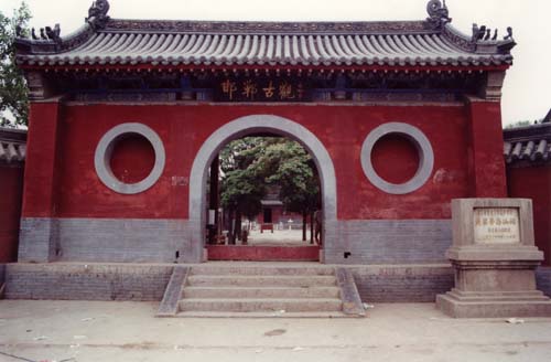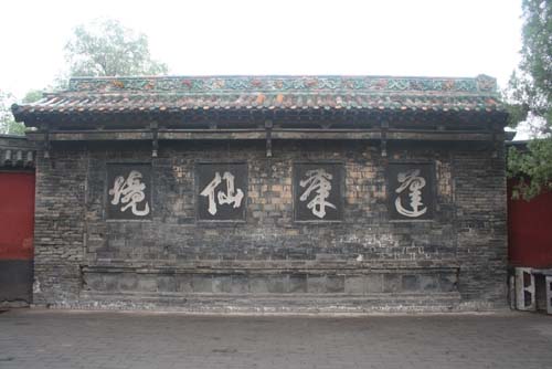 黄粱梦吕仙祠山门为硬山建筑,门楣悬挂的“邯郸古观”匾额为启功先生所书。一般寺庙道观大门多朝南,为何黄粱梦吕仙祠大门却向西开呢?关于这一点有两种说法。一种说法是黄粱梦吕仙祠西靠古御道,御道上车水马龙,行人如织,为便于人们朝拜进香,所以山门向西开;另一种说法是邯郸西部有座紫山,常年紫气萦绕,山门向西有利于道家修炼采纳紫气。