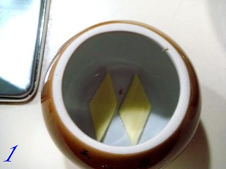 1先把姜片铺在罐底。