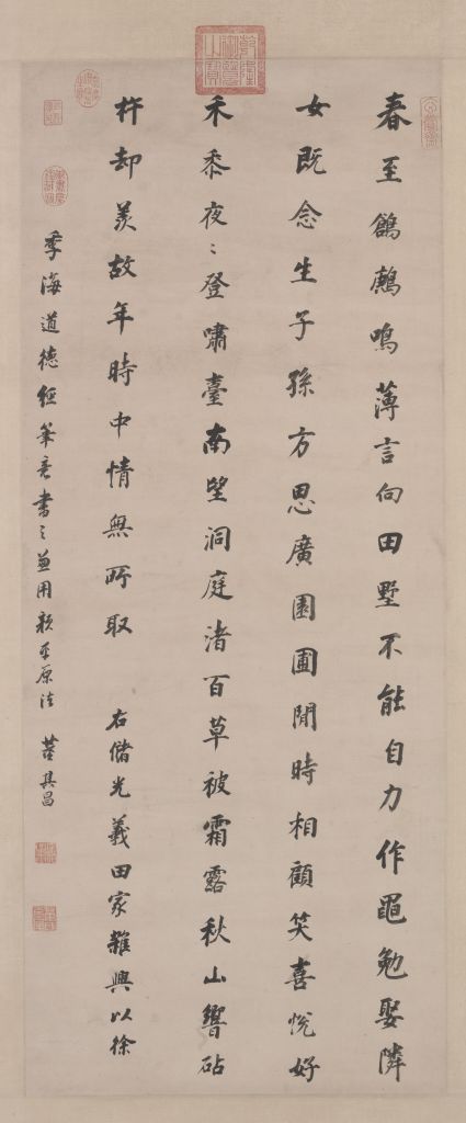 《饯汪元启诗》,明,邢侗书,纸本,立轴,纵142厘米,横33.2厘米, 行书,6行,154字。