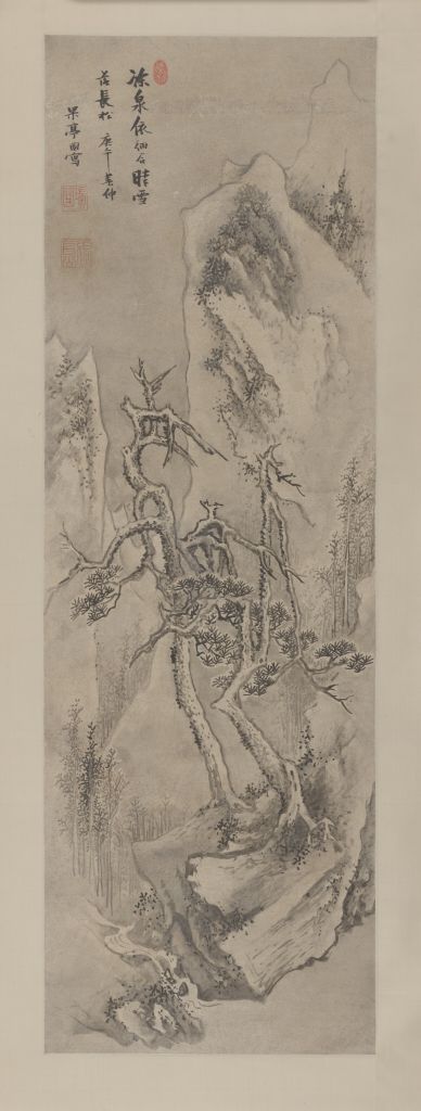 晴雪长松图轴,明崇祯,张瑞图绘,纸本墨笔,纵136.3厘米,横43.3厘米。